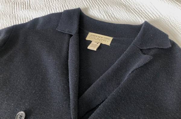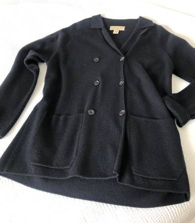 Very Like New! Quality Jones of New York 100% Wool Navy Double Breasted Front Pockets Sz. Large