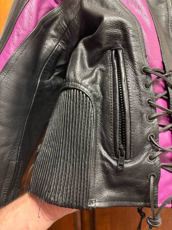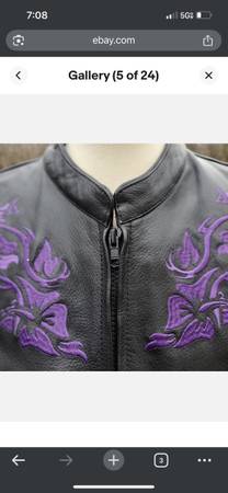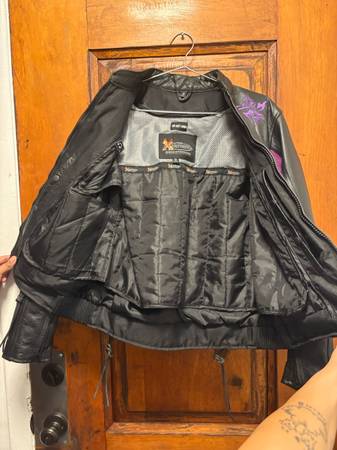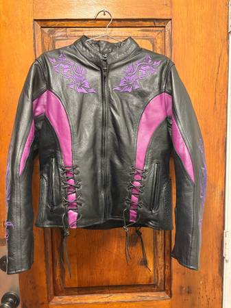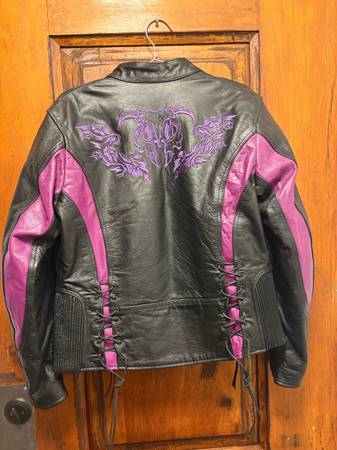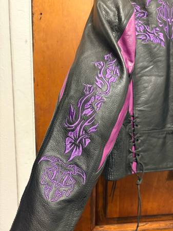 Xelement Ladies Medium Gemma Black Purple Leather Motorcycle Embroidered Jacket