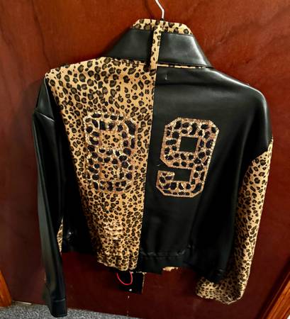 Super cute black/leopard print jacket - -Brand new with tags! Size L Never worn! Paid $190+ Cash only North Tonawanda or meet locally Text 716 57nine 0four91