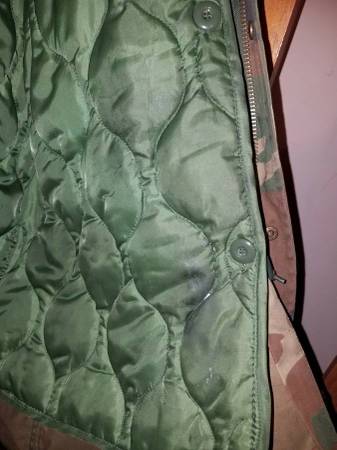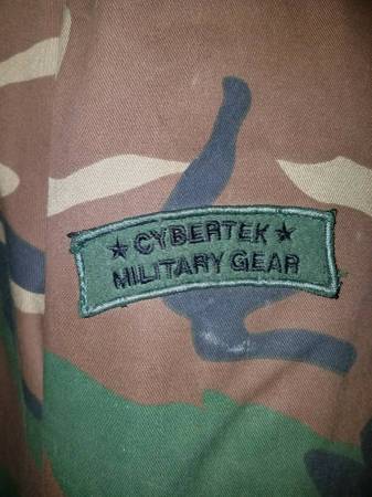 Camouflage Parka with feather trimmed hood; Cybertek Military Gear; size unmarked but fits as XL - 2XL; hood is removable; Please call or text