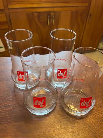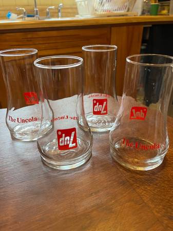 Perfect for your bar, soda fountain or home theater, this hard to find set of 4 7up uncola glasses would make a great gift for a collector or neat way to serve your favorite drinks. No damage or scratches and the red writing is in excellent condition.