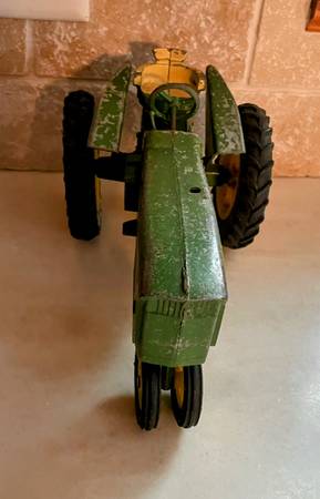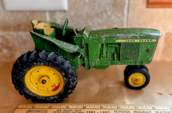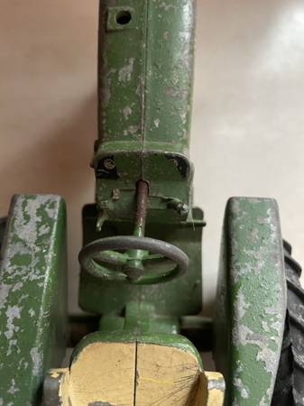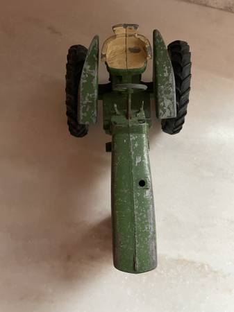 At some point in its life, it looks like the axles have come apart from the wheels and have been glued. Well loved! Nice collectible. I can’t see a brand.