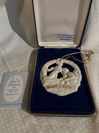 GORHAM JOYS OF CHRISTMAS ANNUAL LIMITED EDITION PARIAN MEDALLION ORNAMENT 1978 - "CHRISTMAS KISS" ORNAMENT COMES IN ITS ORIGINAL BOX WITH PAPERWORK PICK UP TODAY FOR ONLY $18! (CASH ONLY, PLEASE)
