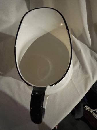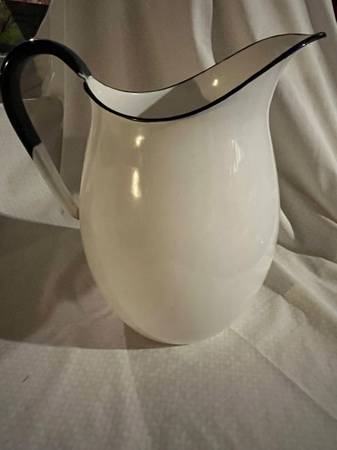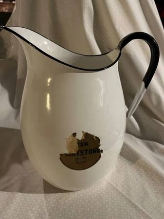 "Lisk Flintstone" Enamelware Pitcher ***RARE*** Measures approximately 9.5" high Exceptional condition - no rust, cracks or chips - only part of label is missing (see pictures) Pick up today for...