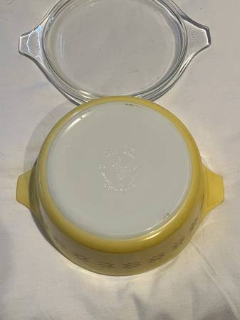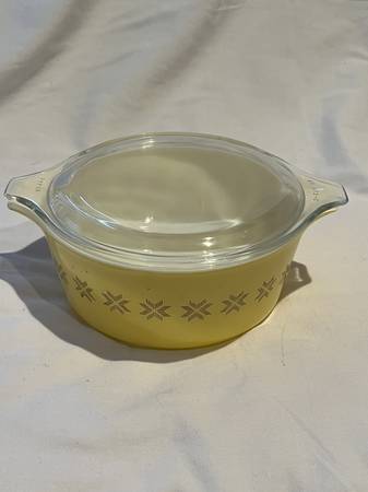 Vintage Pyrex Town & Country Yellow Round 1.5 Pint Serving Dish #472 Lid #470-C Exceptional condition - no chips, cracks or scratches to either piece From the 1960s Dimensions are approximately...
