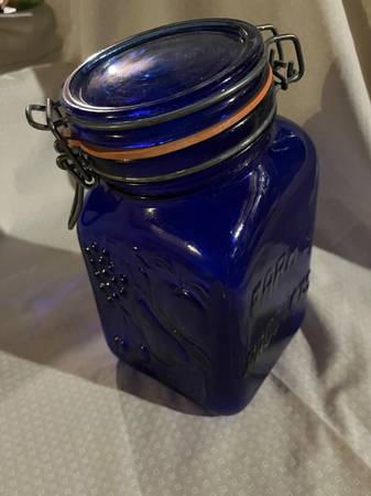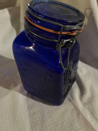 VINTAGE "CASADIS MILANO" COBALT BLUE GLASS FARM PRODUCTS HINGED JAR...