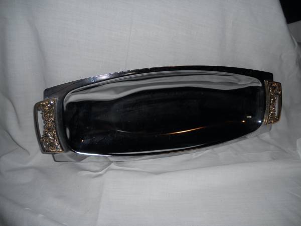 Vintage "Kromex" Bread and Roll Tray Chrome with Unique Brass Handles Mid-Century Modern Style Measures 16.5" long; 6" wide Fantastic condition! Pick up for only $25!