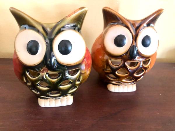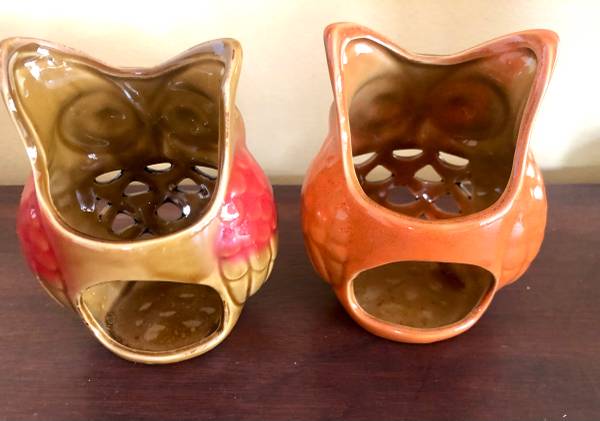 Owl pottery votive pair Cute and Colorful For tea light candle, battery tea lite, votive candle 4”
