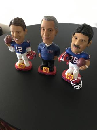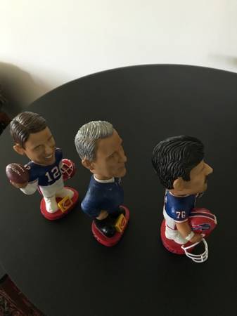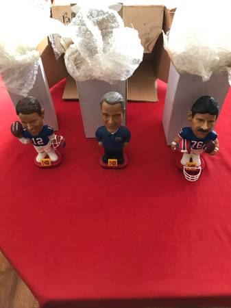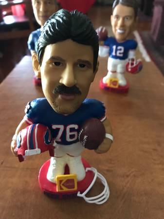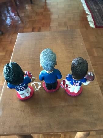 NFL Buffalo Bills Kodak Football Bobblehead Set of 3. Jim Kelly, Levy, Smerlas. Excellent condition, no chips, cracks and includes Smerlas. Face mask. Just removed from original bubble wrap to take attached photos. Jim Kelly Limited edition series 1 of 3, Marv Levy Limited edition series 2 of 3 and Fred Smerlas Limited edition series 3of 3