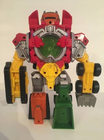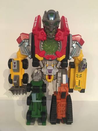 Transformer 2008 Devastator Mega Power Bots action figure. Standing at 12 inches, this figure represents the fearsome Decepticon faction and is designed to spark the imagination of fans with its detailed design and light-up feature, capturing the essence of the "Transformers: Revenge of the Fallen" movie. Crafted by Hasbro, this iconic Constructicon character comes in vibrant, multicolor plastic, reflecting the durable craftsmanship synonymous with the Transformers franchise. Ideal for collectors and kids over the age of 5, the Devastator figure, though without packaging, is ready to either display or recreate epic battles from the Transformers universe. Please call (716) two 8 four, 7 six 7 one. This item are is available if this ad is still up.