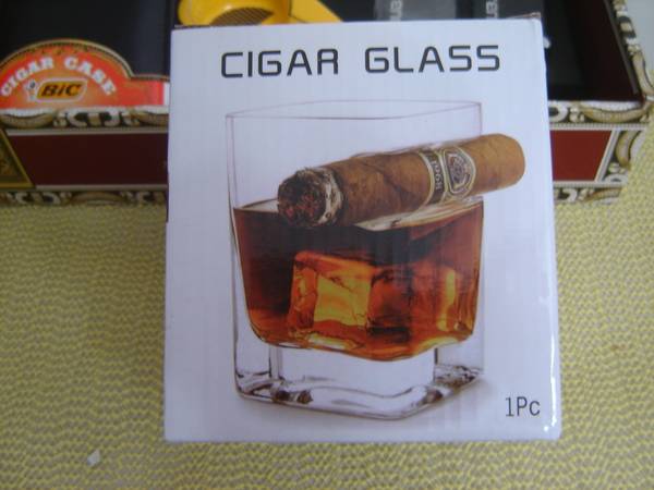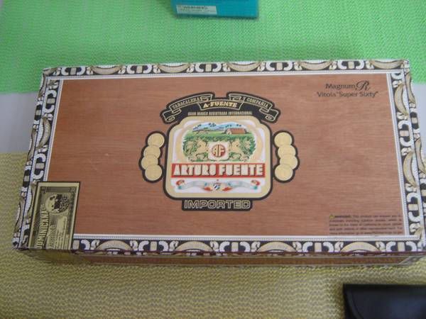 * ARTURO FUENTE WOOD CIGAR BOX with cutter, ashtray, cigar glass, 2 cases. NEW items. An unique cigar glass with an indent in the side of the glass for your cigar 1 Roygra Yellow Ashtray 1 cutter a...