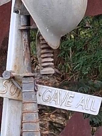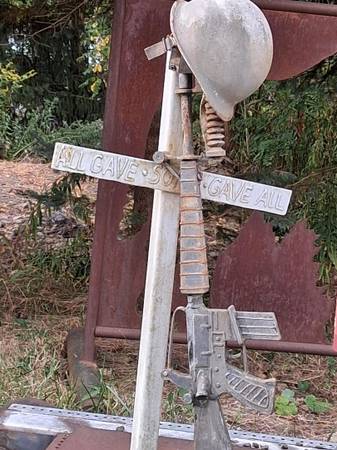 This one of a kind metal sculpture is approx. 44" tall. It is all hand made with the exception of the real helmet. It is a very heavy piece. seven16seven96seven913. Honor those that made the...
