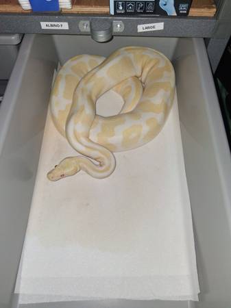 All 4 females available Pastel Female 1,200 grams Albino Female (Proven) Albino Hatchling Female (173 grams) Pied Female (1,125 grams) high white Make all message me for more information , thank you...