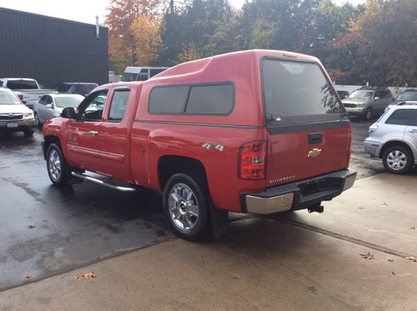 Rowland Street Garage is thrilled to offer this gorgeous 2013 Chevrolet Silverado LT 1500 (4WD) Extended Cab for purchase. It is colored in red with a black interior. It has just 108K miles and an automatic transmission. It has the 4.8 liter V8 engine. The condition of this truck is nothing short of remarkable. It has ZERO corrosion anywhere. It looks like it has been garage kept the entire time. It is a ONE-OWNER truck that originally came from Texas. It has a clean CarFax with no accident or damage history of any kind. We love to see this. The body is immaculate. The panels are all straight rust-free. The paint is still glossy and looks great in red. Even when you open the fuel filler door you can see it looks like it just came off the showroom floor. The door hinges and door frames are spotless. The rocker panels and cab corners are immaculate, as well. It has had a bedliner for its entire life. The interior is immaculate. The seats are not marked or worn (which they usually are). The dash and console are spotless. Everything works just as it should. The suspension is rust-free as is the exhaust system. The tires are in good shape. All the fluids and belts have been changed recently. There is a full set of pictures on our website. This is a truck which impress anybody. We invite any potential buyer to inspect it personally. However, it can be shipped anywhere sight "unseen" and the new owner will be thrilled with its cosmetic and mechanical condition.