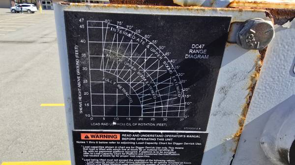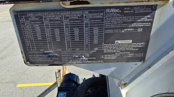 Altec Digger Derrick (Model - DC47TR) (Serial # 0219EU3638) is in perfect working condition. Has pole carrier mounted on utility body.