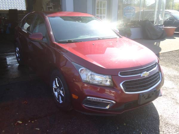 This 2015 Cruze is a clean, fuel efficient sedan with only 68k miles. In the shop, we just gave this one a full synthetic oil change, new front brakes/rotors and 4 brand new tires. If you are looking for an affordable, low mileage car for everyday use, then come see this one. Every vehicle we sell at WNY Auto Sales & Service comes with a clean CARFAX report and a 12 month/18,000 mile warranty package. We have financing available for good or bad credit and we welcome any trade-in. Call Mark at 716-857-0145. ***We can issue new plates and do transfers right here at the dealership***