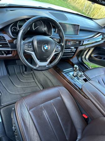 2015 BMW X5 xDrive35i AWD 4dr SUV 3.0L 56000 Miles, Powered by a 3.0L TwinPower Turbo inline-6 engine producing about 300 horsepower and 295 lb-ft of torque, paired with an 8-speed automatic transmission. The xDrive all-wheel-drive system ensures confident handling and traction in all conditions. Delivers an estimated 18 MPG city and 27 MPG highway, Navigation LED lighting, power liftgate,White exterior and Brown interior, Fog Lights, Blind-Spot Alert, Keyless Start, Leather, Backup Camera, panoramic sunroof. tel show contact info