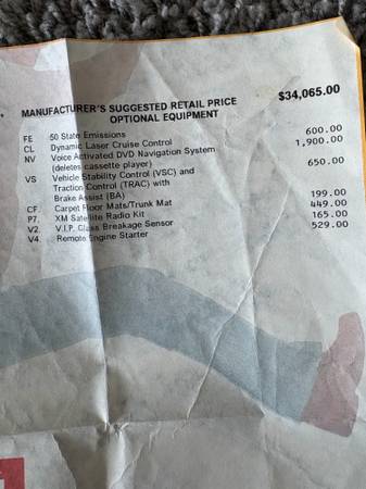 CarFax is included as well as most of the receipts for maintenance etc along with Original Window Stickers showing both the standard Avalon Limited Equipment as well as the Mfg’s Optional Equipment added at $4,492.00 in USD. No rust, Always kept indoors in a heated and cooled garage. Tires would probably need replacing considering Winter approaching. All in all, a fantastic luxury and very spacious sedan also know as "the Japanese Limo"!