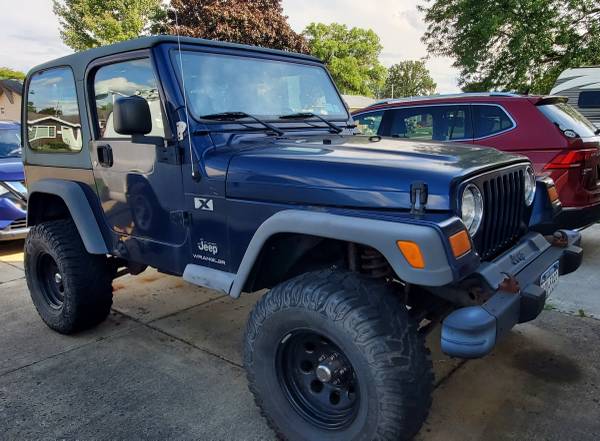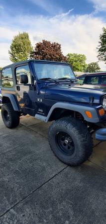 4.0L 6cyl engine, AM/FM/CD, nice cold A/C, 5 speed, manual, cloth seats, 2 ½ in. lift kit, 52,000 miles(low!), only 2 owners (in the same family!), comes with 2 soft tops as well, 33x12.50 tires...