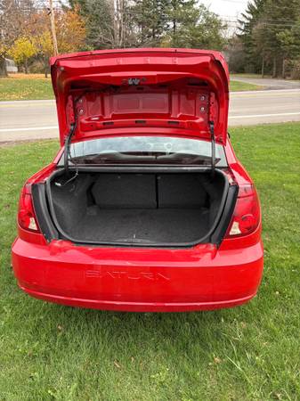 2007 Saturn ion. 131 thousand miles. 2.2 liter 4 cylinder motor, automatic transmission. Fresh Mobil one oil change. 30 plus mpg. Red exterior, grey interior that is clean. Car was just inspected, no check engine light or anything like that. Has good tires and runs and drives well. Goes straight down the road and is a pleasure to drive. Does well in the winter months, it’s a front wheel drive car with a great heater. There are small doors to access the back seat and the back seats fold down for flexibility carrying stuff and camping. If you’re interested you can call or text 716 9nine8 71twotwo. Thanks.