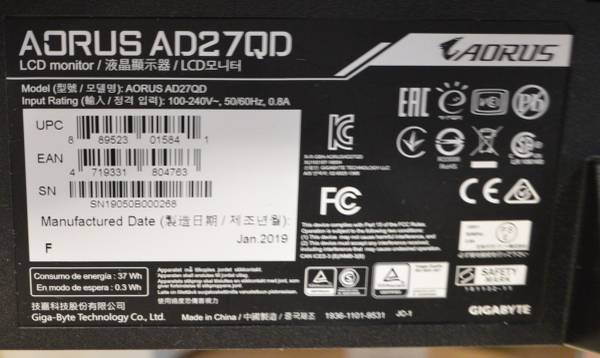 GigaByte Aorus model AD27QD 27" QHD 2560x1440 1ms 144Hz FreeSync Gaming Monitor in very good working condition with a couple of small scratches. 144Hz refresh rate.