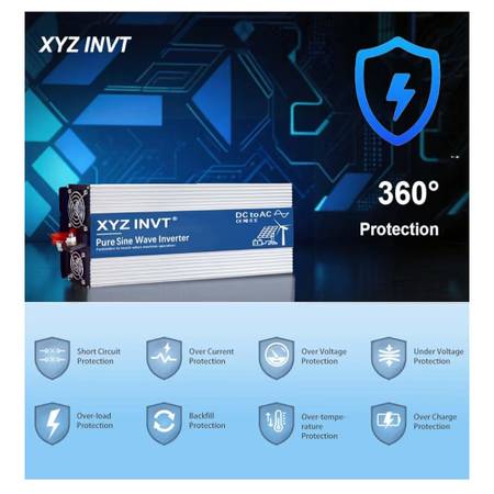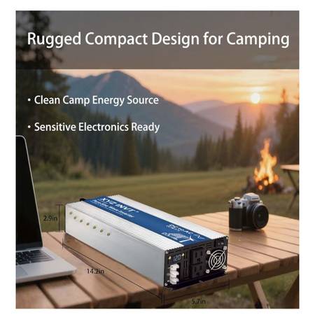 【High Efficiency up to 90%】 Features premium components and intelligent circuit design, this inverter maximizes usable power from your battery system while minimizing energy waste. With an impressive 90% conversion efficiency, it delivers optimal power output for extended runtime and superior performance.