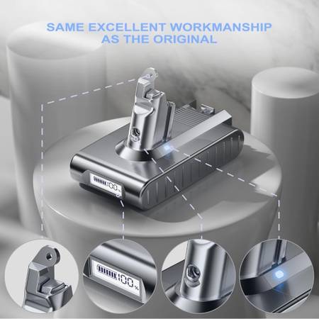 【New Upgrade】The Dyson V6 battery has an LED power display light, which allows users to monitor battery usage more intuitively. and the battery comes with built-in over-charge, over-discharge, over-voltage, over-current, and over-heating protection, No memory effect,can be store, charged or discharged as needed without loss of capacity