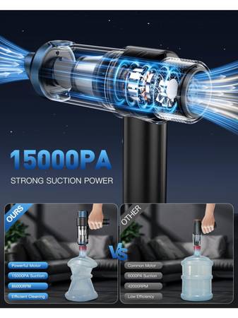 🌀【Powerful 15000PA Suction】Powerful motor of the hand held vacuum cleaner has 86,000RPM and provides up to 15000PA of suction power. Whether it's a sofa or carpet in your home, or the interior of your car, it's easy to clean. The rapid heat dissipation function can expel heat in a short period, making the motor more durable and long-lasting. The operating sound is as low as 40dB, so you can clean quietly without disturbing others