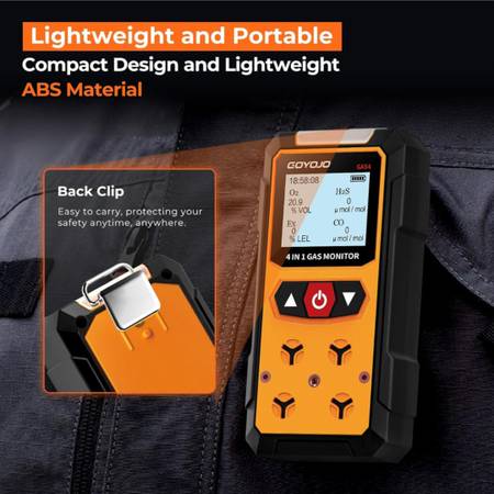 ENSURE SAFETY, PROTECT LIVES: Elevate security with the GOYOJO Gas Leak Detector, a comprehensive 4-in-1 monitor for H2S, EX, O2, and CO gases. Covering a detection range of H2S (0~100 μmol/mol), EX (0~100% LEL), O2 (0~30% VOL), and CO (0~1000μmol/mol), this device is a must-have for your home or workplace.