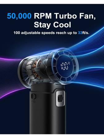 100-Speed Turbo Airflow β Customize your cooling from whisper-soft breeze to intense airflow with 100 wind levels and up to 50,000RPM rotation speed. You can adjust the turbo fan to meet your specific cooling needs in any situation.