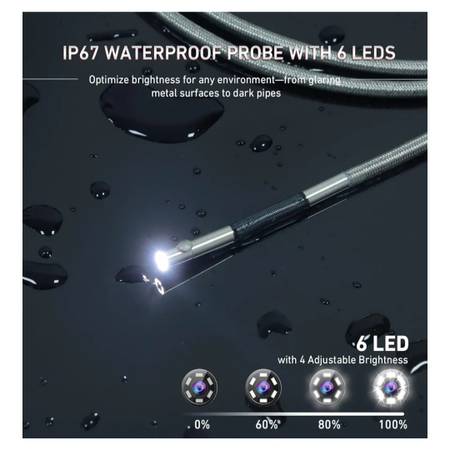 Durable Stainless Steel Flexible Snake Cable: Built with a full-length stainless steel flexible snake tube, Ralcam borescope camera resists kinking and damage. Keeps its shape for precise control during inspections yet remains flexible. The IP67 waterproof probe is suitable for various environments, including wet or oily areas