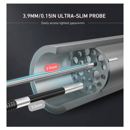 Ultra-Slim 3.9mm Inspection Camera: Ralcam borescope features an incredibly slim 3.9mm camera probe that accesses narrow spaces effortlessly. Precision inspections for narrow pipes, small engine ports, and confined mechanical areas where larger scopes can't reach