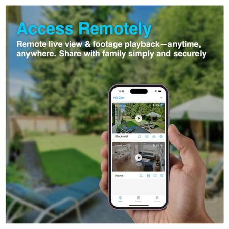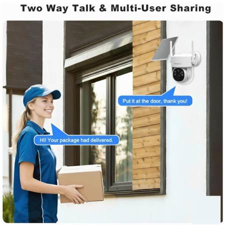 [Two-Way Talk & Smart Siren Alarm] The home security camera has a built-in microphone and speaker that supports real-time two-way talk. Via the HG Cam App, you can warn off thieves, screen visitors at your door, or communicate directly with your family or friends. The siren alarm, flashing LED light, and two-way talk feature all help to deter unwanted visitors.
