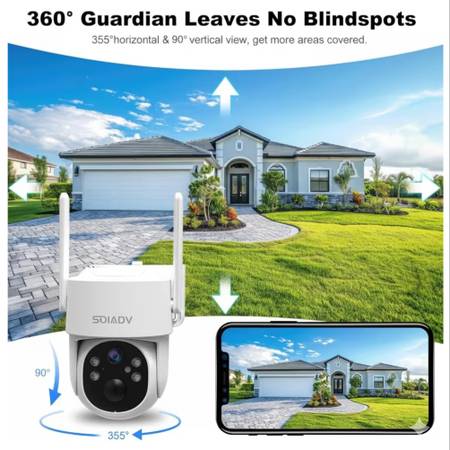 [Crystal 2K FHD & 360° Full View] The outdoor camera wireless features 2304 x 1296 pixels, which is four times the resolution of 1080P. It offers a 355° horizontal and 90° vertical rotation range, providing a comprehensive view of your surroundings with Ultra 2K HD live video and images. Advanced color night vision technology allows you to enjoy vivid and accurate colors even under low-light conditions. You can access the system's live or recorded videos from anywhere at any time.