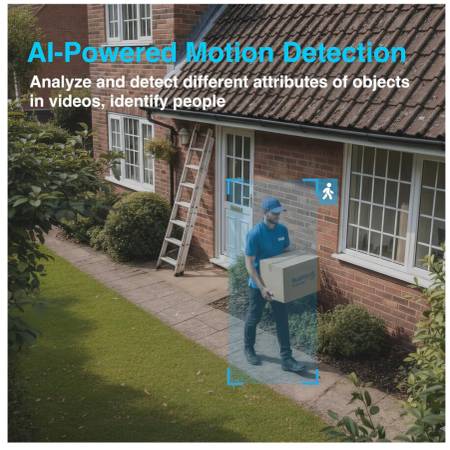 [Smart PIR Motion Detection with AI Recognition] This outdoor security camera features advanced smart AI motion detection, enabling it to clearly analyze and recognize people, vehicles, pets and packages. The wireless camera can be triggered by the AI PIR sensor in real-time once motion is detected, and instant notifications are pushed to your phone via the app.