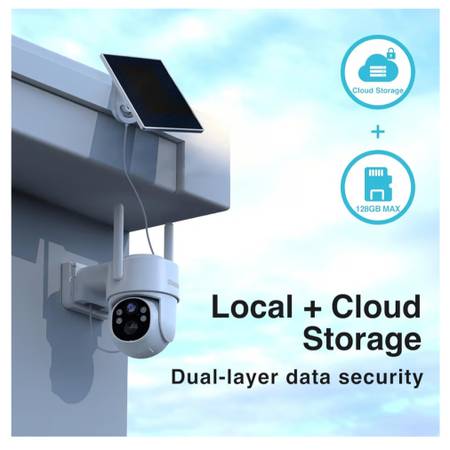 [SD & Free 1-Month Cycle Cloud Storage] The wireless security camera outdoor offers dual storage modes. It supports a microSD card (up to 256GB, not included) and provides 1-month 7-day rolling cloud storage (up to 30-second recordings loop coverage). Advanced features include AI recognition, upgraded cloud memory, and custom alert areas.