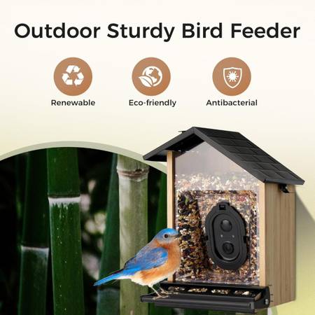 TT Nature Smart Squirrel-Proof Bird Feeder with Camera 2K, Solar Powered, AI Bird Species Recognition, Instant Notification, CCPA Data Security, Bamboo 3.2L Large Capacity, Ideal Gift