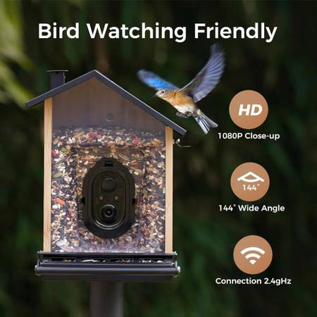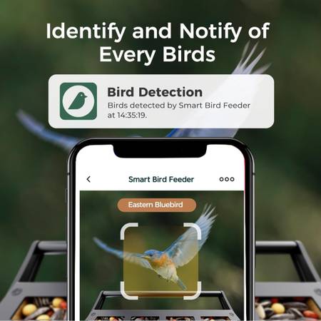 Birds up Close:Capturing 2K videos and photos. AI identifies different species. Smart bird feeder with camera sends visit notifications to your phone. Collect and store fascinating bird videos and photos