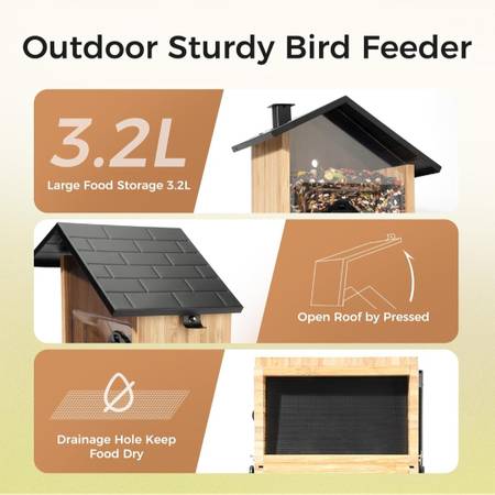 Squirrels Proof: TT Nature smart bird feeder weight-activated perch that helps keep the seed supply safe from larger bird and squirrels. When the weight on the smart bird feeder perch exceeds a certain limit, the perch closes, preventing access to the seeds