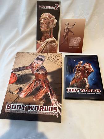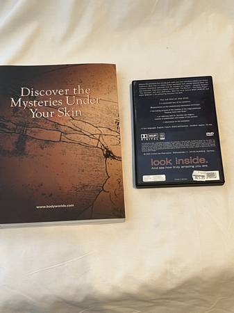"Bodyworlds" by Gunther von Hagens Book - beautiful illustration, like-new condition DVD - approximately 70 minutes long, 4 languages available Pick up both for $45! (Sorry, will not split)