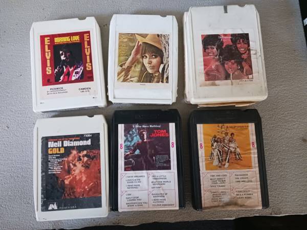 74 8 TRACK CARTRIDGE TAPES. ALL 8 TRACKS UNTESTED AND AS IS, HAVE NOT BEEN PLAYED IN 30 YEARS.