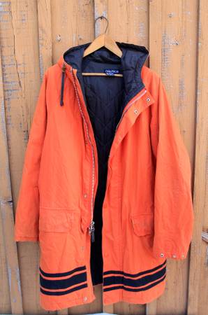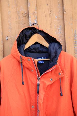 Quality! Rugged style! Step out in style in the wild Upstate weather in this classic NAUTICA jacket! Super warm! LOADS of pocket space (two outer, one inner) Hood! Button snap sleeves! Loads of details classic of any Nautica jacket!