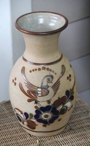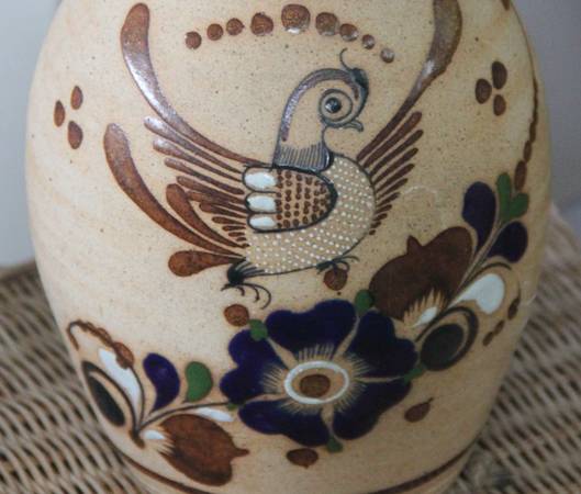 This is a STUNNING piece of art disguised as a vase! ! Best of Tonala pottery from Mexico! VIBRANT colors--sharp lines--every detail --elegant, classy, wow. Sets off any space it inhabits. Works in any decore...but wow. Photos don't do it justice! Really beautiful Mexican artistic flair--topnotch artisan craftsmanship. Like new... great gift. Or make it a valued gem in your space!