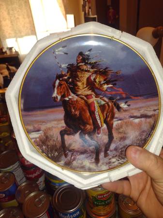 I have a bunch of native American limited collector plates all are like new except one has a small chip all come with hangers 5$ each or 100$ for all 26