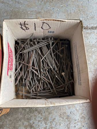 Half box of 5” nails for $10, 3/4 of a box of Matandy Cap Nails for $15.