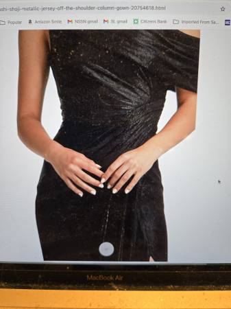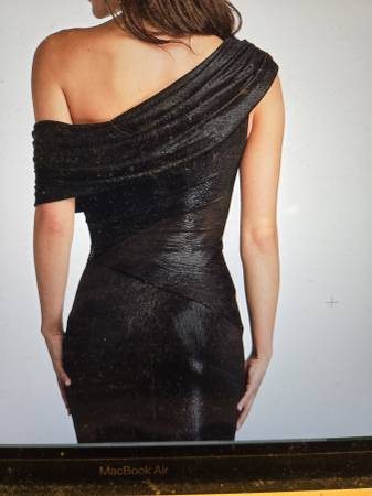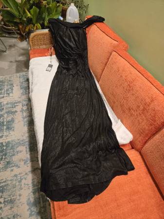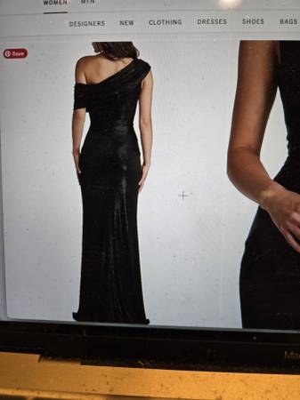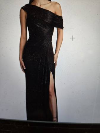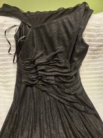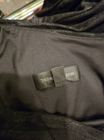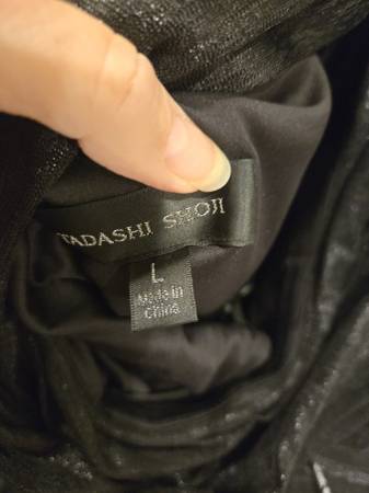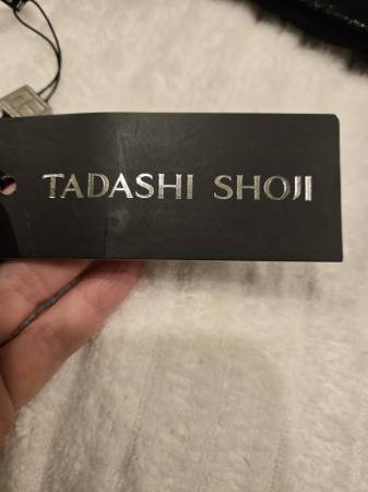 Designer NWT sz Lg Tadashi Shoji Metallic Jersey Off-the-Shoulder Column Gown from Saks Fifth Ave