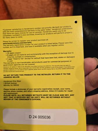 Brand NEW neoprene wetsuit with tags. I had taken off the tags and I have them, but I never went on the vacation I had planned so I never used the suit.