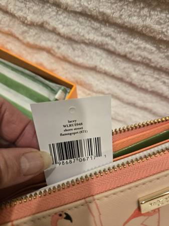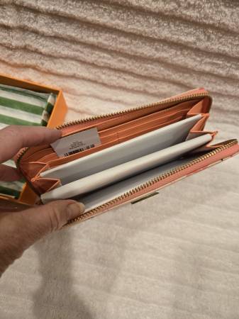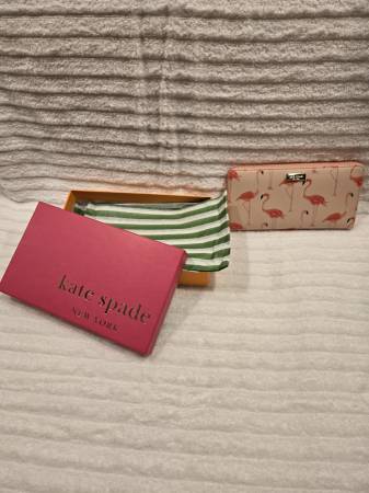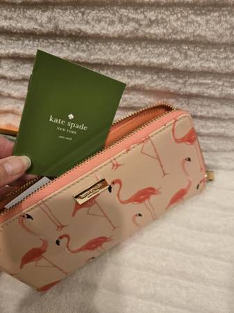 Featuring a vibrant pink color and a playful animal print pattern, this wallet boasts multiple compartments to keep your belongings organized. It also includes credit card slots, a zippered closure, and the iconic Kate Spade logo accents. This zip-around wallet is perfect for adding a touch of elegance to your everyday look.
