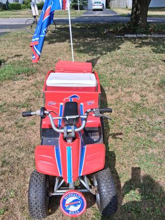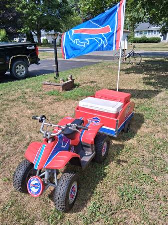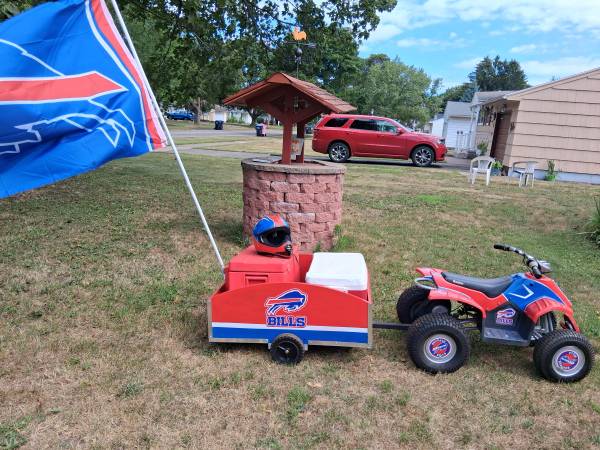 ****ATTENTION BILLS FANS and MAFIA**** Razor 24 Volt "Buffalo Bills" Runabout with Trailer. New Tires and Battery. Comes with warm and cold coolers and Helmet New Paint, Just what every Fan should...