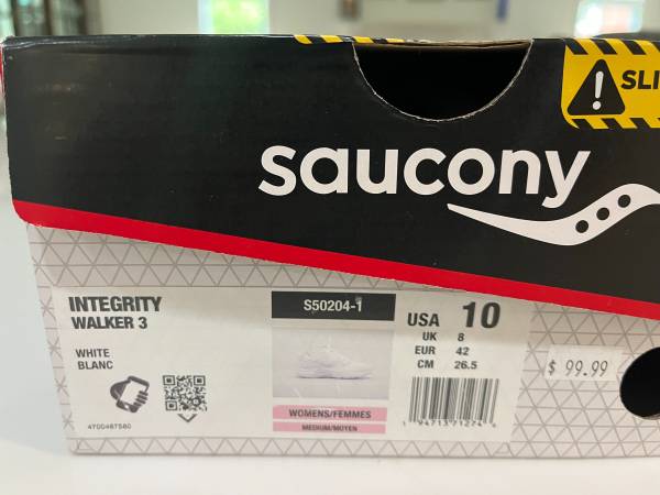 We are selling a pair of Saucony Integrity 3 White Walking Shoes Women Size 10. These were purchased but only worn once around the house. There are NO rips or tears and are like new. These come from a pet free and smoke free home. The shoes will come with the box. These shoes retail for over $100.
